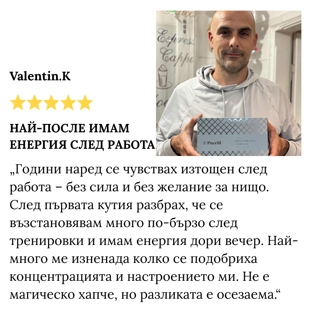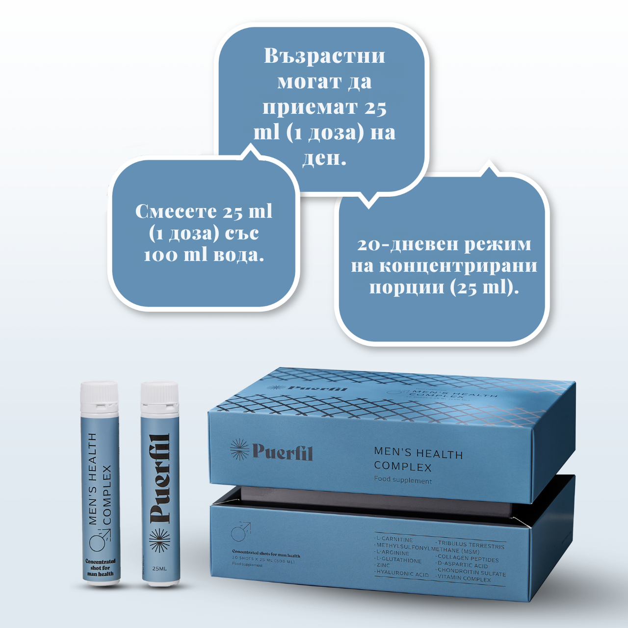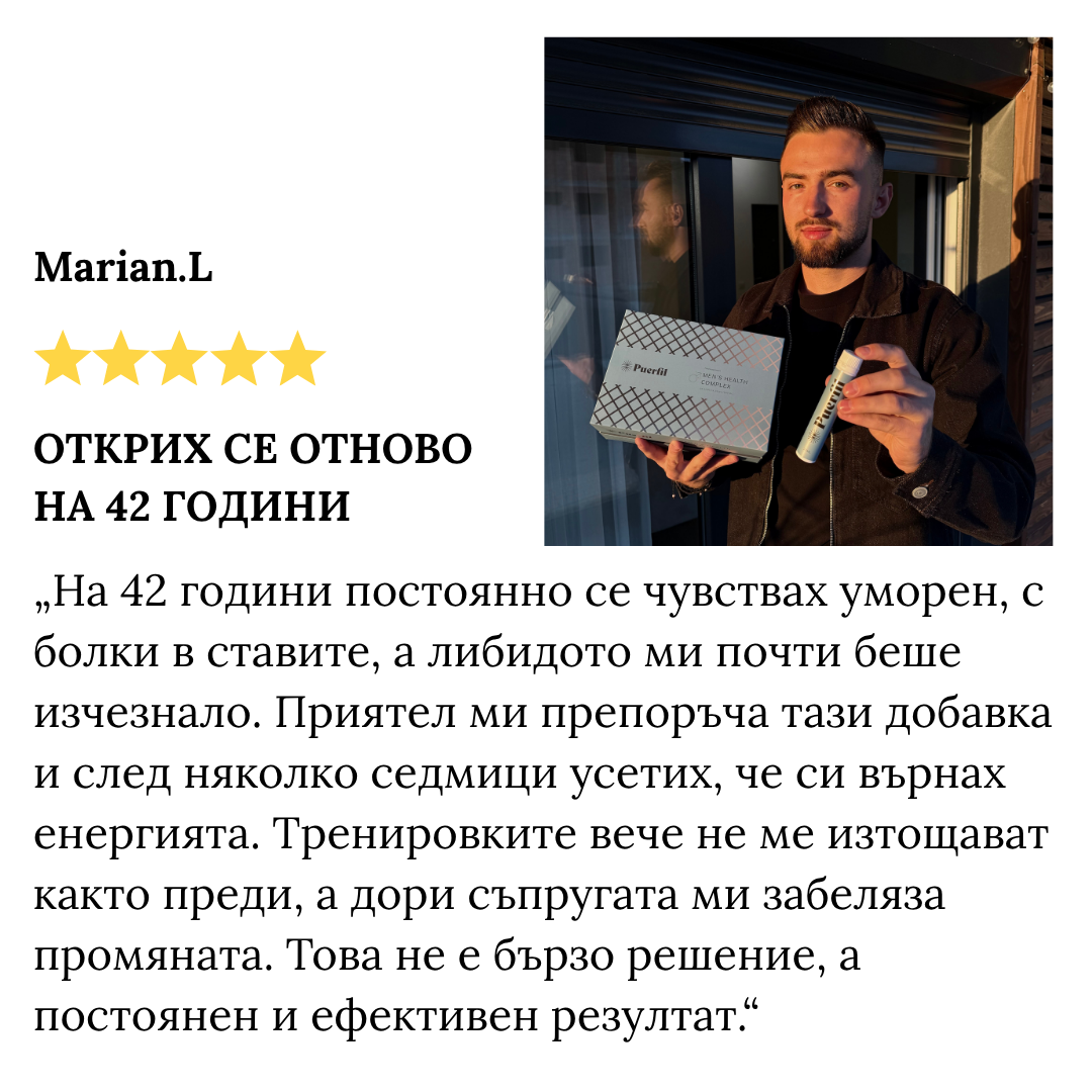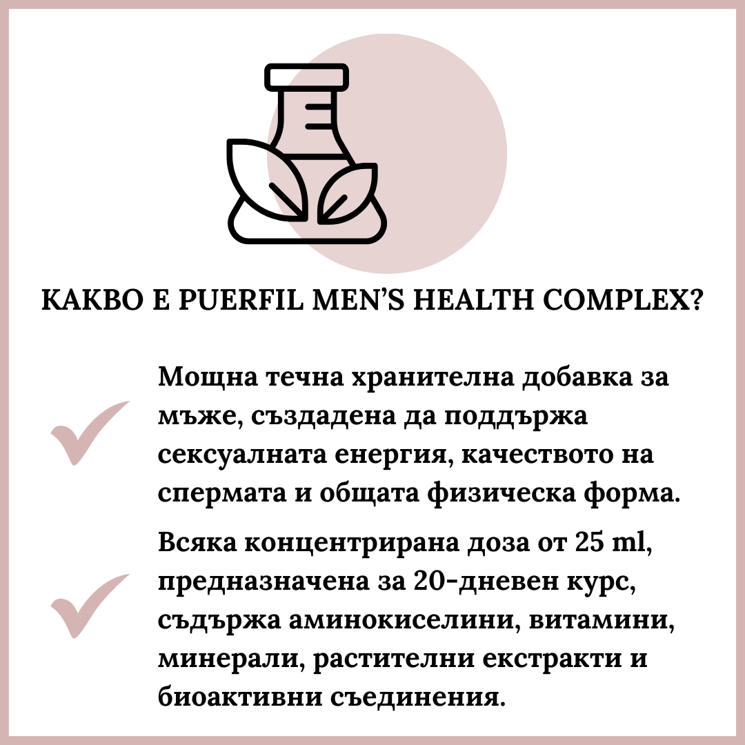 PUERFIL MEN'S HEALTH COMPLEX СЪДЪРЖА 20 СПЕЦИФИЧНИ СЪСТАВКИ