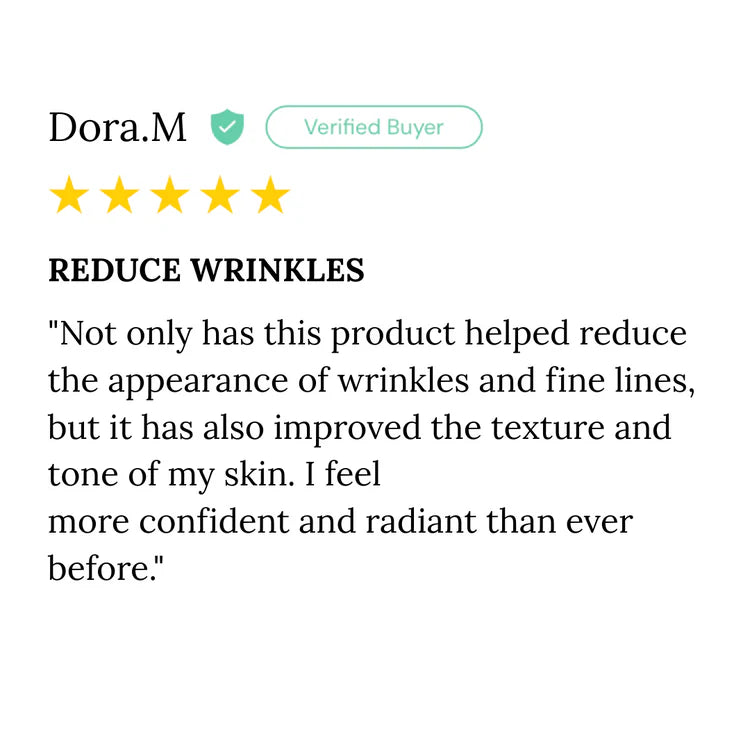 Вода, хидролизиран рибен колаген, концентрат от бял гроздов сок, фруктоза, метилсулфонилметан (MSM), регулатор на киселинността: лимонена киселина, L-аскорбинова киселина (витамин C), хиалуронова киселина, цинков бисглицинат, аромат на грозде, консерванти: калиев сорбат, натриев бензоат; L-холинов битартрат, никотинамид (ниацин), меден глюконат, DL-алфа-токоферол (витамин E), калциев D-пантотенат (пантотенова киселина), D-биотин, рибофлавин (витамин B2), пиридоксин хидрохлорид (витамин B6), коензим Q10, тиамин мононитрат (витамин B1), ретинил ацетат (витамин A), натриев селенит, холекалциферол (витамин D), цианокобаламин (витамин B12).
