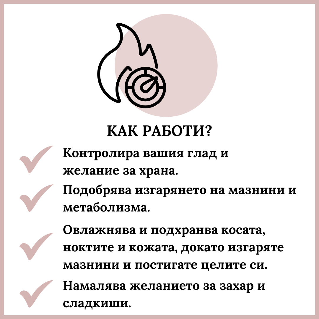 ✅ Работи на няколко нива като хидратира и подхранва вашата коса, нокти и кожа, докато горите мазнини и постигате мечтаната фигурa