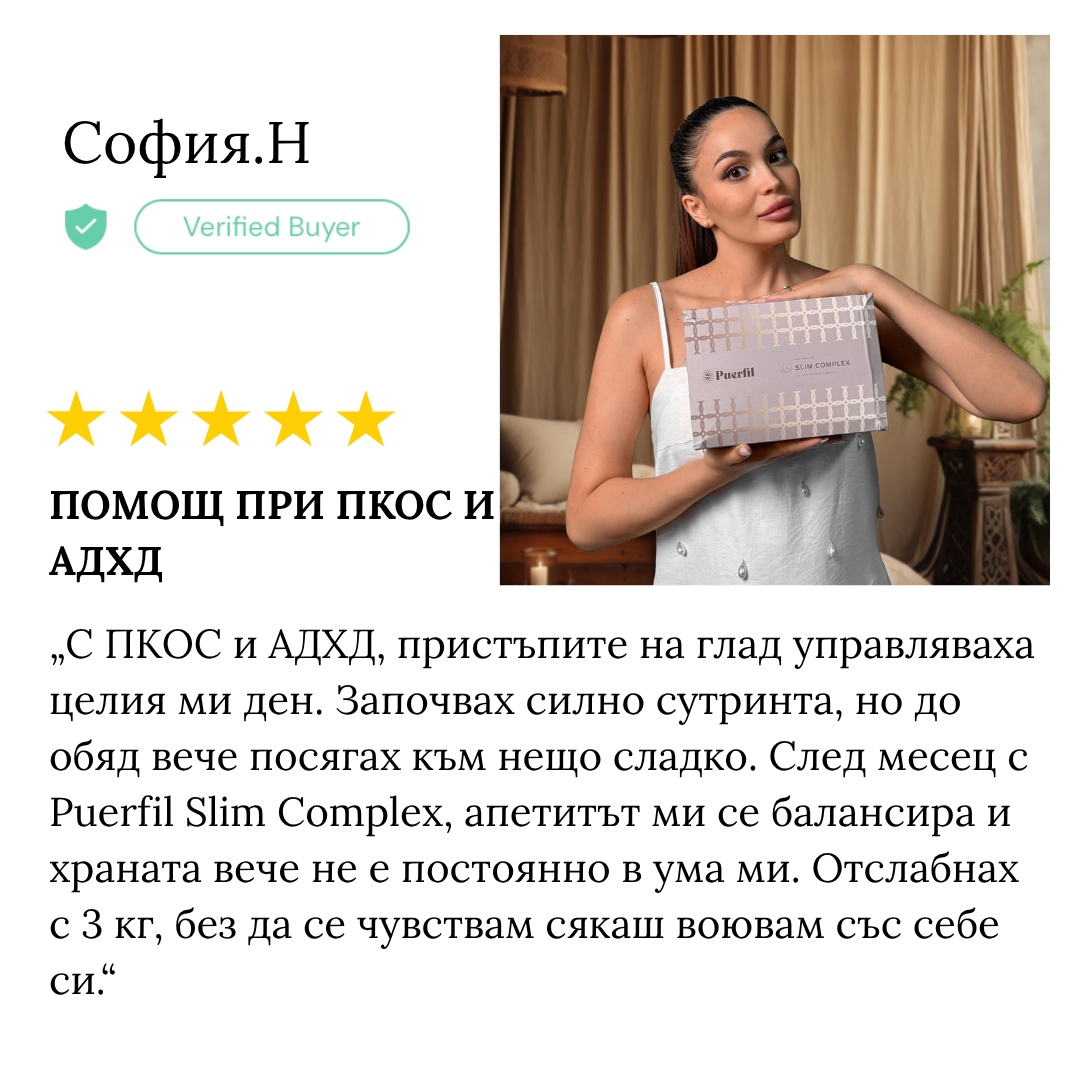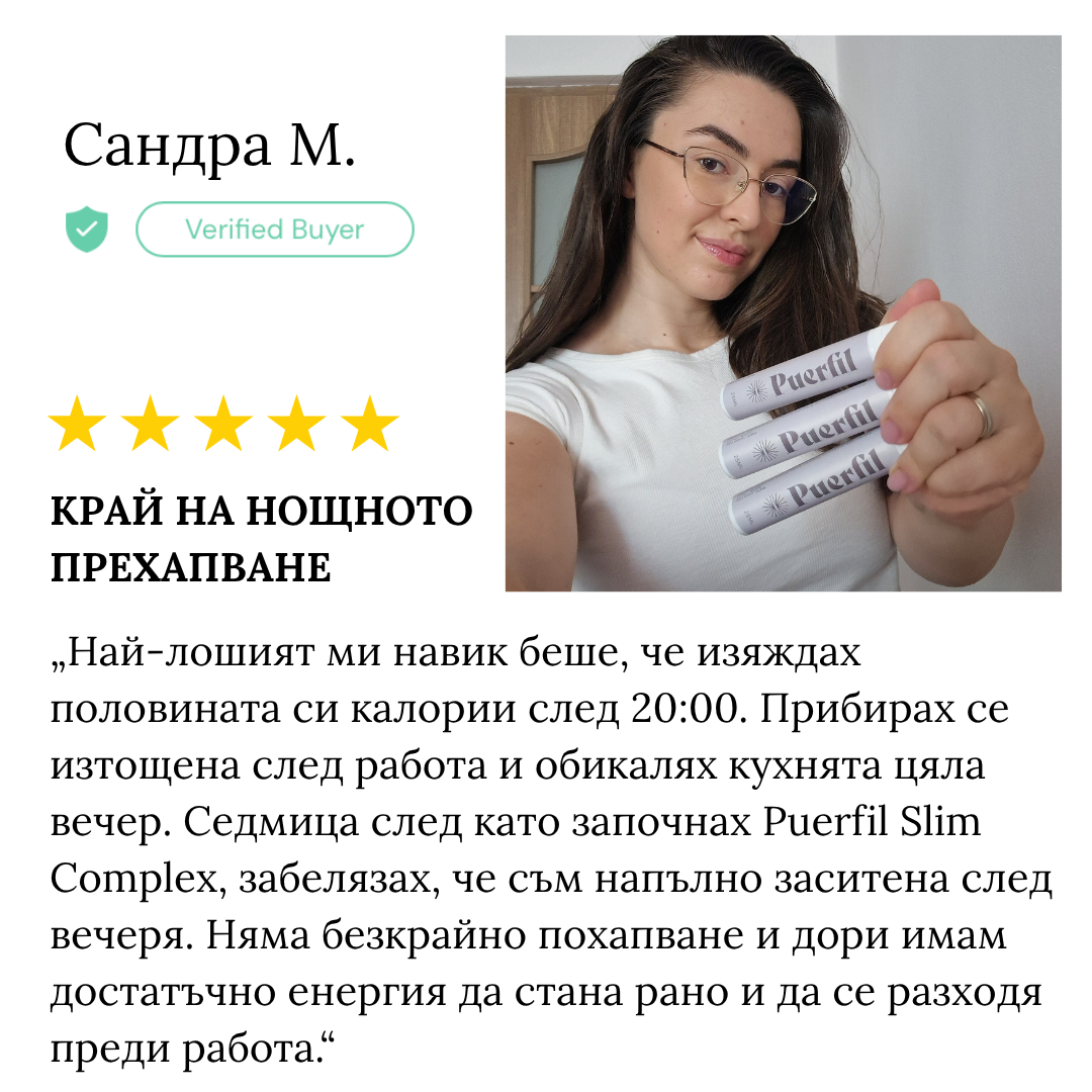 Използвайте Puerfil Slim Complex, за да регулирате апетита, метаболизма и формата на тялото си в перфектна хармония и да покажете на света отново истинското си ВИЕ.